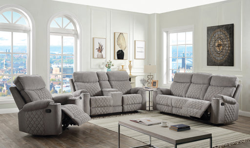 NationwideIn stockUNIQUE STYLE MOTION GROUP IN A GREY TEXTURED FABRIC. GROUP FEATURES DIAMOND QUILTED LOOK ON SEATS, BACKS, AND ARMS. CONSOLE MOTION LOVESEAT WITH S...