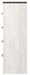 Cool, clean and casually modern. This chest’s wispy whitewash and gray finish sets the tone for your calming sanctuary. Large linear pulls add dimension and authenticity. Four smooth-gliding drawers neatly accommodate your wardrobe needs.