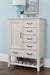 Vaughan-Bassett Passageways Oyster Grey Door Chest in Oyster Grey 144-117. Standing Chest offers impressive storage featuring 5 drawers; 1 door revealing a fixed shelf and a flat bottom shelf. Wire brushed waxy brown finish.