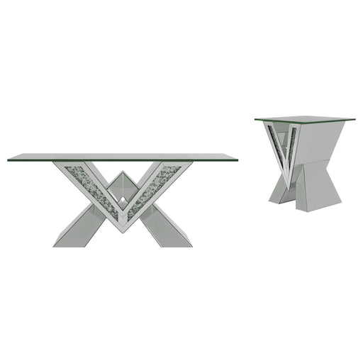 Coaster Z2 PremiumThis mirrored coffee table set exudes modern luxury with bold, diamond-shaped designs. Including a coffee table and end table, both pieces feature ...
