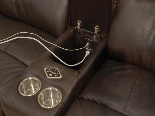 Catnapper Furniture Positano Power Reclining Console Loveseat w/Storage & Cupholders in Cocoa