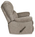 A mastery in "less is more," this rocker recliner manages to make cool, contemporary design so warm and cozy. Its smoky gray upholstery, incredibly plush to the touch, is a new twist on neutral. A curved divided back and a deeply tufted footrest give the clean-lined profile a sense of sumptuousness that's impossible to resist.