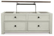 Store, serve and showcase your favorite things with this lift top coffee table. Its textured antique white finish creates a vintage two-tone look that will endure for years.
