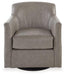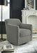 Down with uptown style. This swivel accent chair goes to town with a high-design aesthetic that's temptingly affordable. An ideal way to enhance your lounge space, this chair with a 360-degree swivel base brings casually chic style full circle.